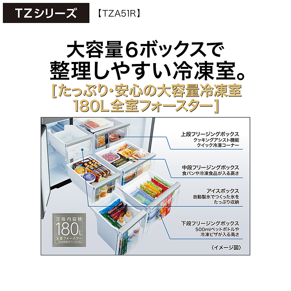 ・整理しやすくたっぷり入る『大容量6ボックス冷凍室』