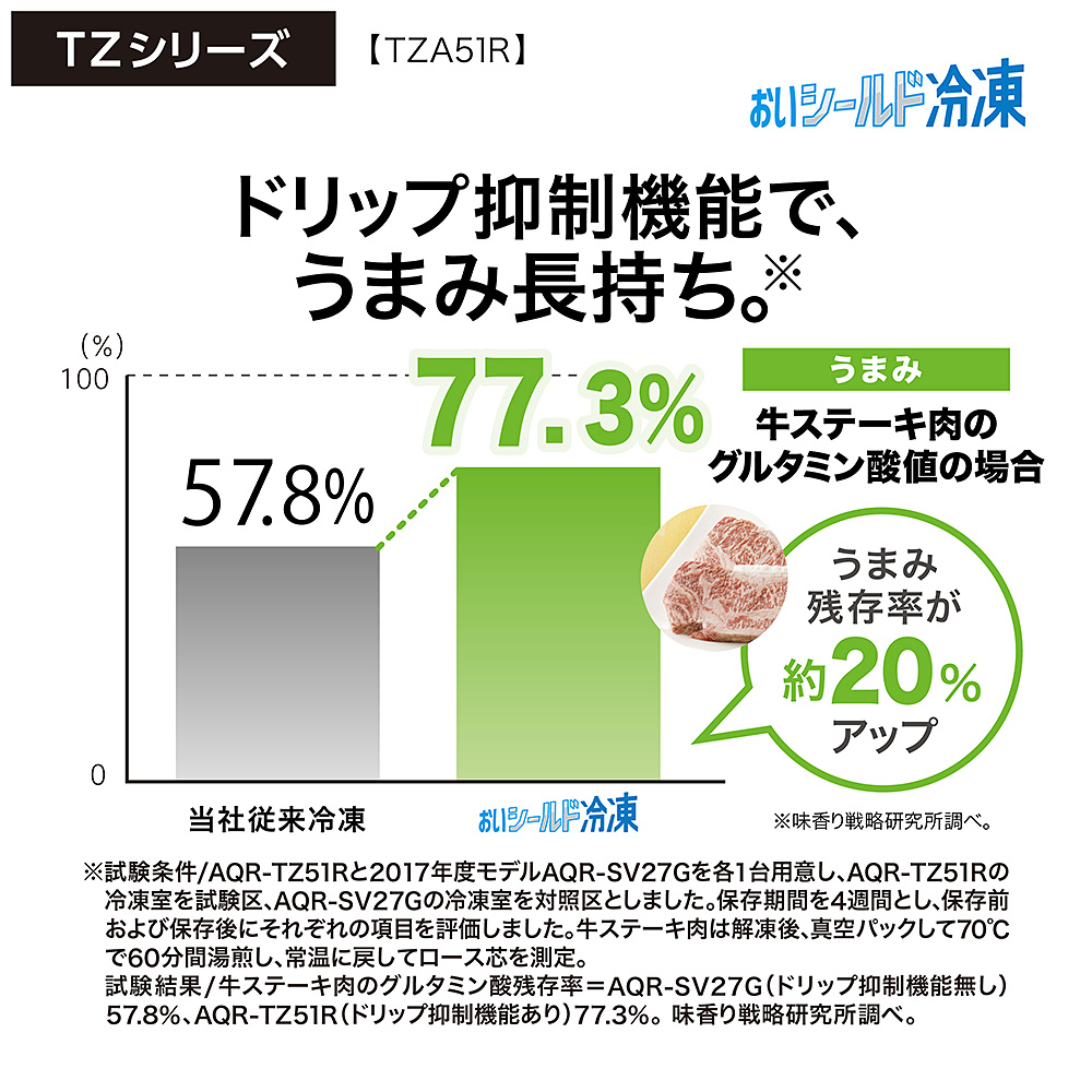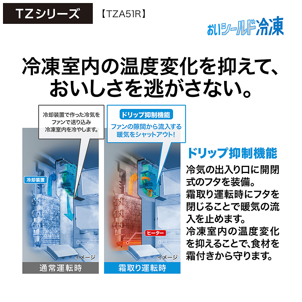 冷凍室内の温度変化を抑え、長期間おいしさを保つアクアの特許技術