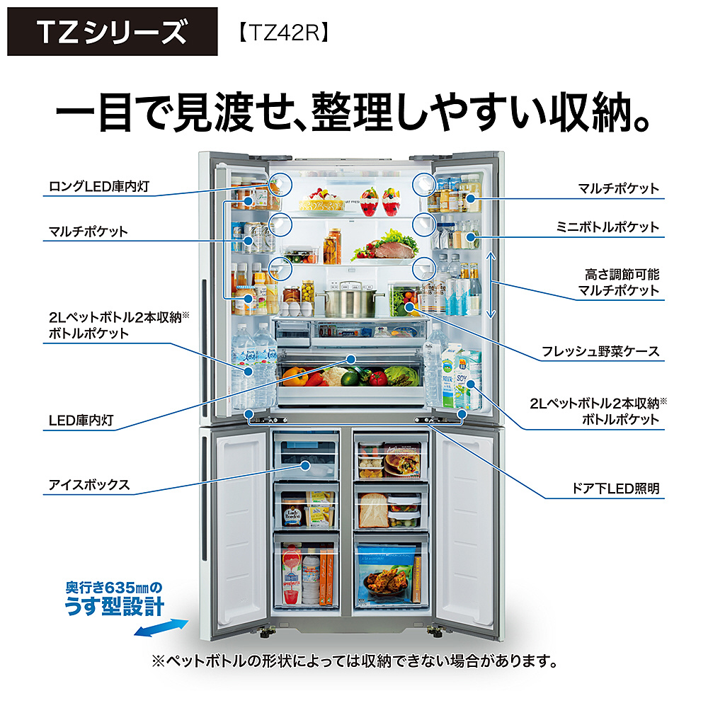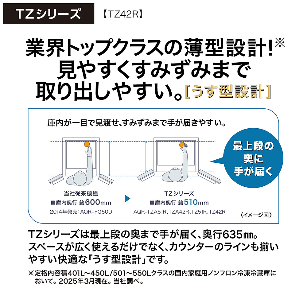 商品名 冷蔵庫 AQUA サテンシルバー AQR-TZ42R(S) [幅70cm /420L /4ドア /観音開きタイプ /2025年]【基本設置料金セット】 【買い替え10000pt】