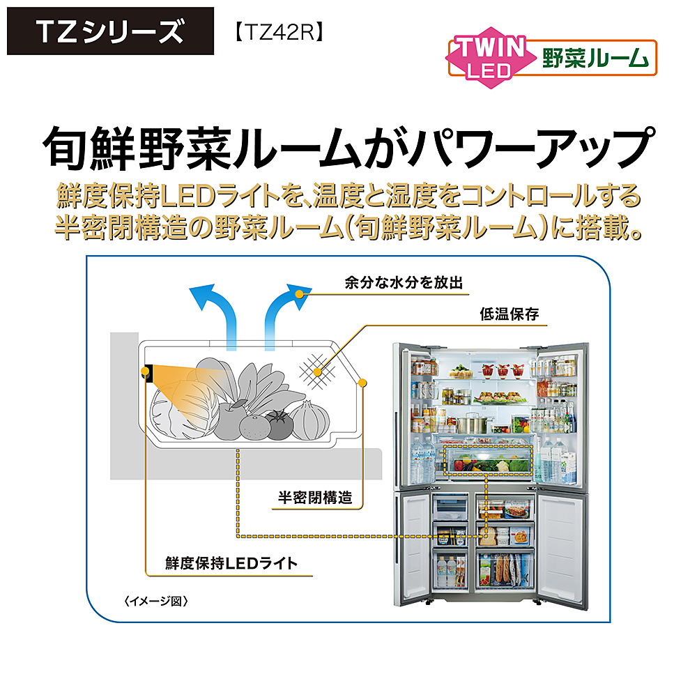 ・発芽抑制と鮮度保持を同時に実現『ツインLED野菜ルーム』