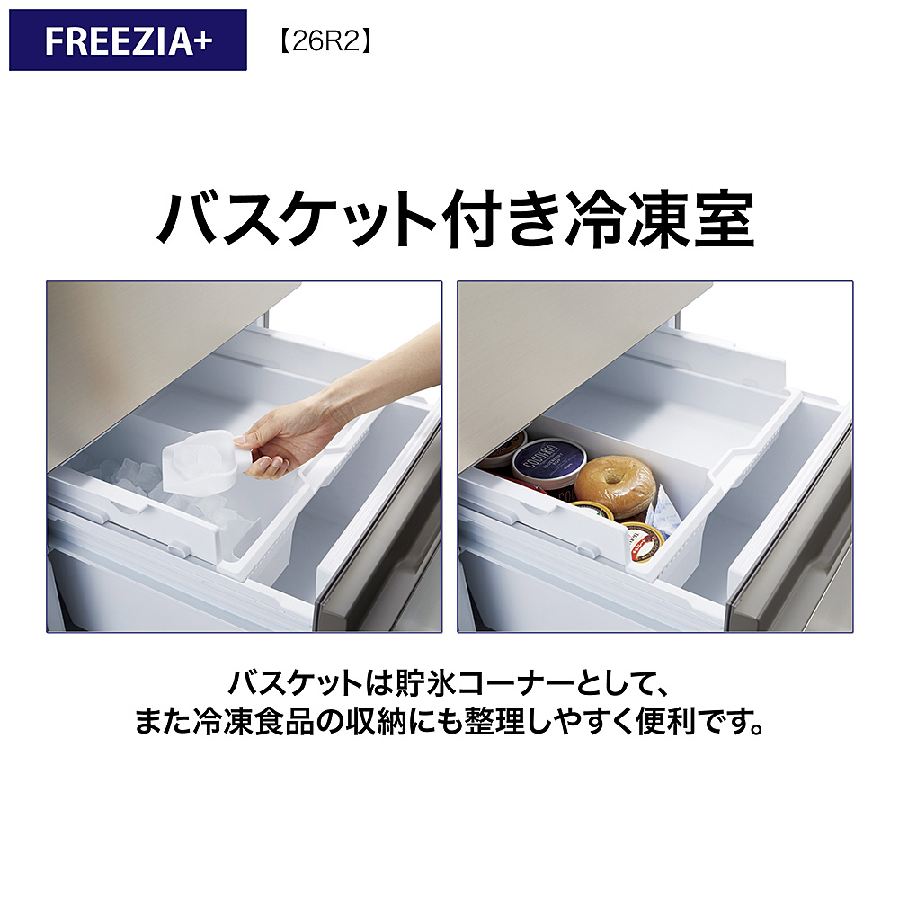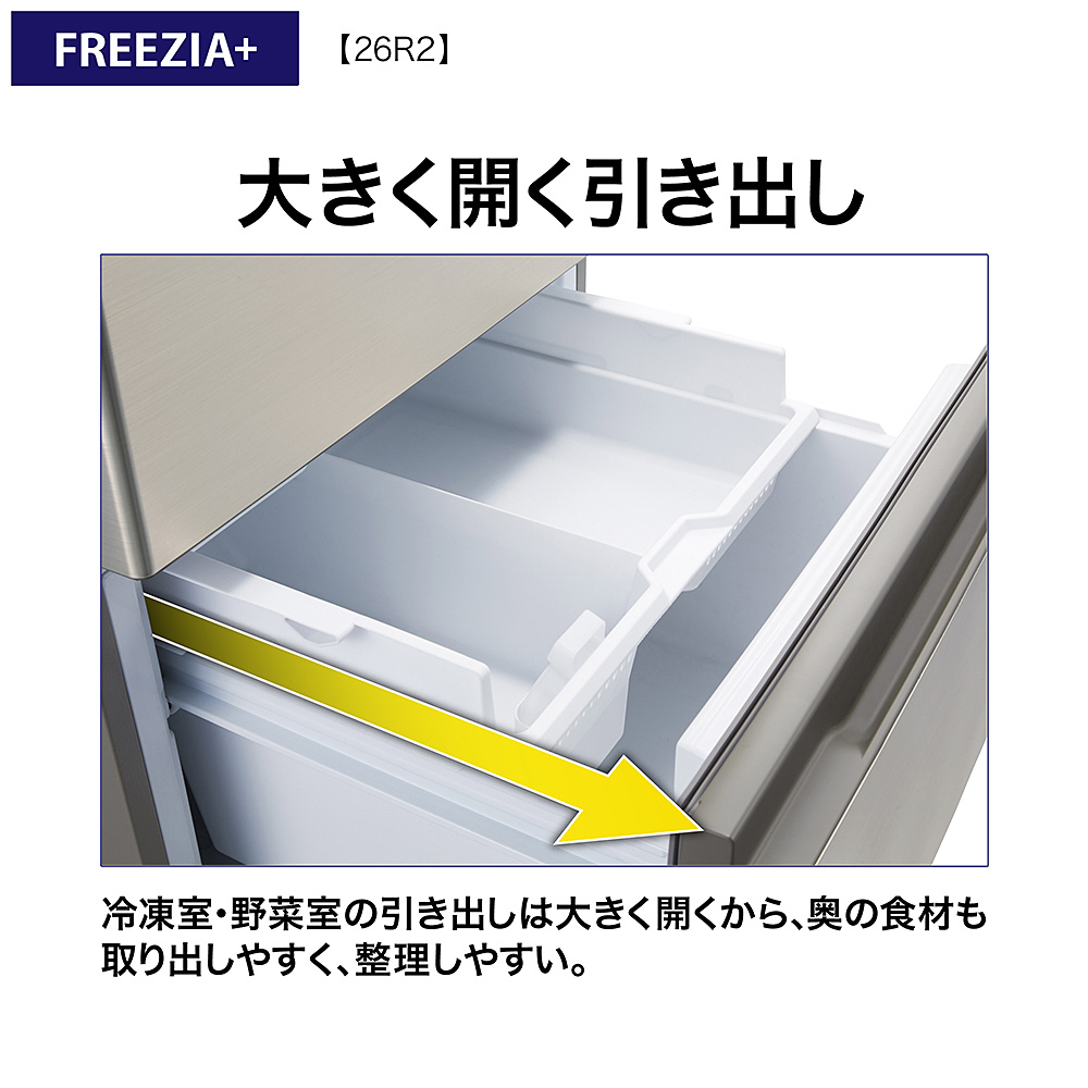 整理しやすい大容量まんなか冷凍室、インバーター搭載 省エネモデル。