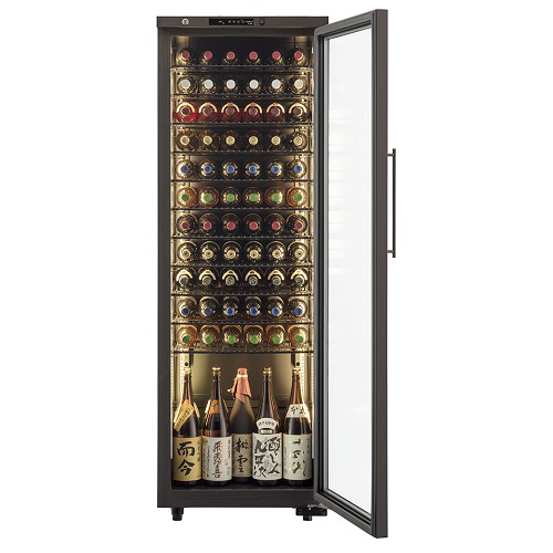 庫内のガイドレール上のフックを調整することで棚間隔を細かく変更することができます。最下段のスペースを広めにとり、付属のカゴを外すことで日本酒の一升瓶や四合瓶を立てて保管することが出来ます。ST-309G/GLは設定可能温度が6℃〜20℃のため、日本酒の雪冷え(6℃程度)、花冷え(10℃程度)、涼冷え(15℃程度)のいずれにも対応可能です。