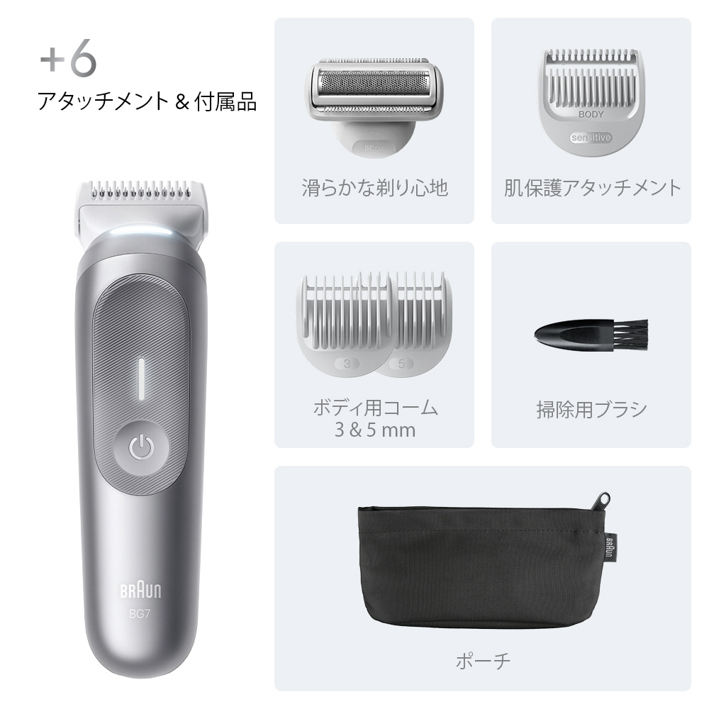 | 付属品 | ファインピッチヘッド、ファインピッチヘッド、コーム 3mm、コーム 5mm、ボディシェイバーヘッド、クリーニングブラシ、ジッパー付きポーチ、専用コード |