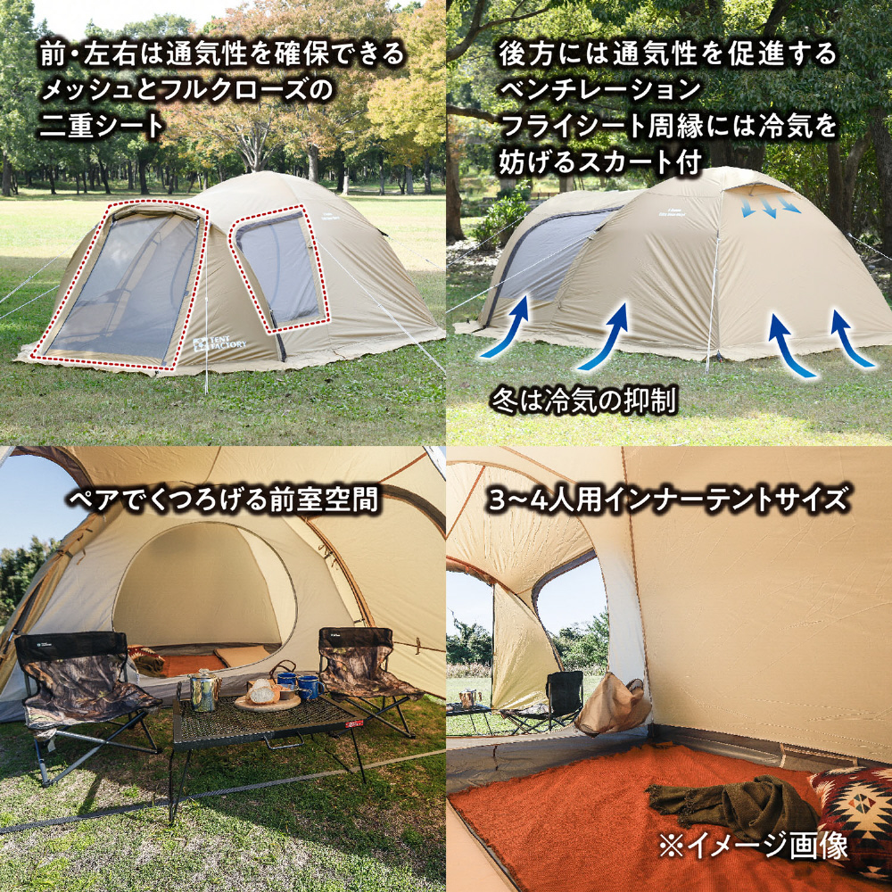 ・フロアサイズはスタンダードな240×210cm、3~4人用向け。