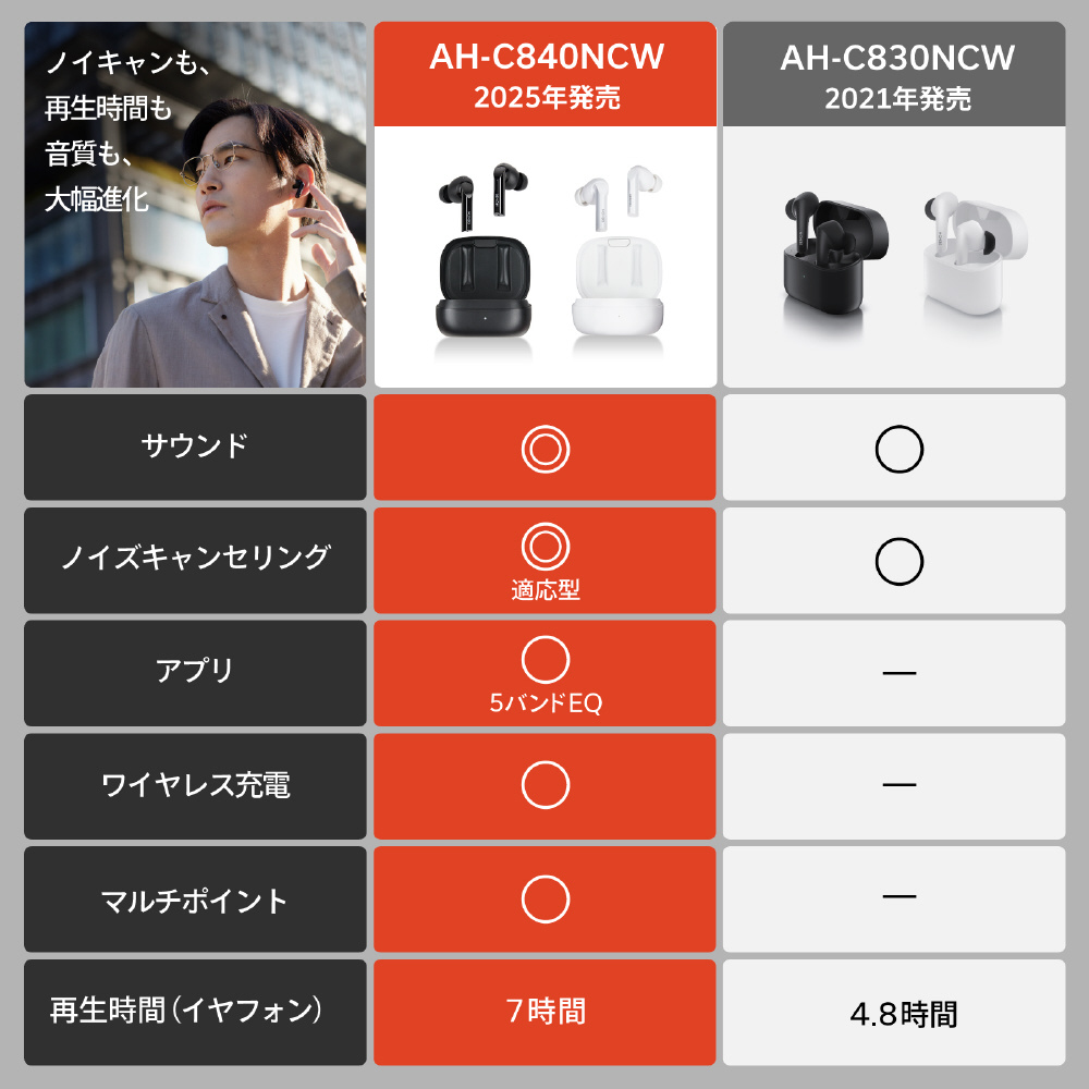 完全ワイヤレスイヤホン ホワイト AHC840NCWWTEM [ワイヤレス(左右分離) /ノイズキャンセリング対応 /Bluetooth対応]
