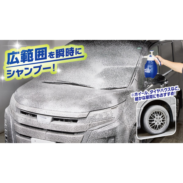 粉雪のようなきめ細かい泡で優しく洗浄!電源不要!広範囲をムラなく瞬時にシャンプーします!