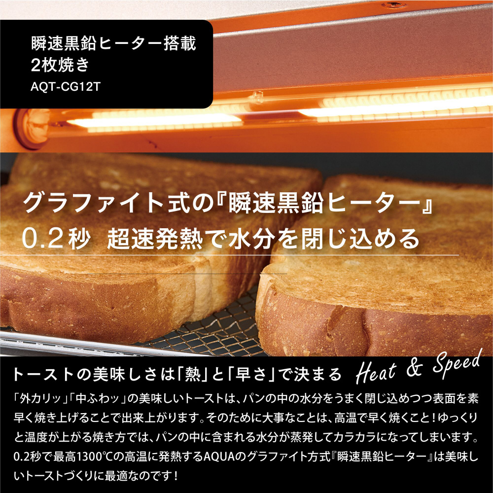 瞬速黒鉛ヒーター搭載 2枚焼きトースター ホワイト AQT-CG12T(W)