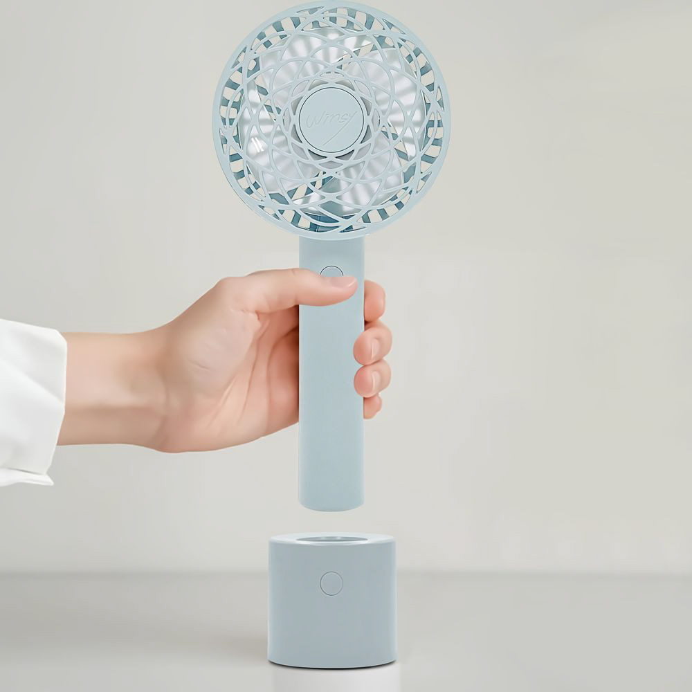 自動回転&置くだけ充電台座付きで、手持ちでも卓上でも快適な送風!