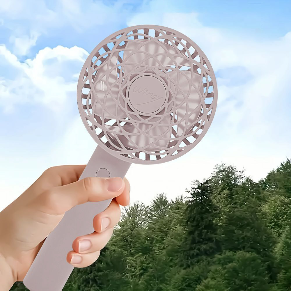 風量を4段階で調節できます。90度の自動回転&置くだけ充電台スタンド付(常時給電式)でハンディとしても、卓上でも使えます。連続使用時間は約8時間(弱風)。ファンガードを外して羽根のお手入れが可能なので清潔にお使いいただけます。