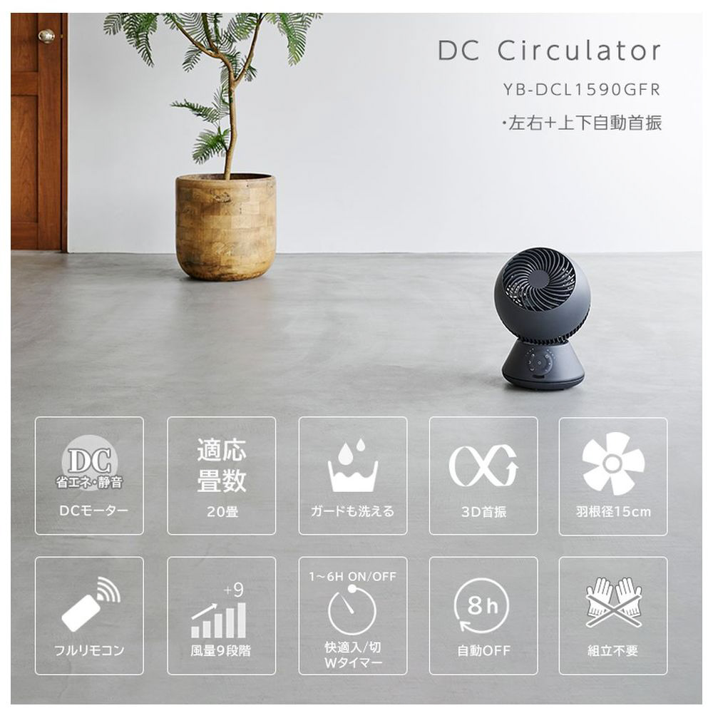 DC 3Dサーキュレーター 5枚羽根 YB-DCL1590GFR-K [DCモーター搭載 /リモコン付き] 【864】