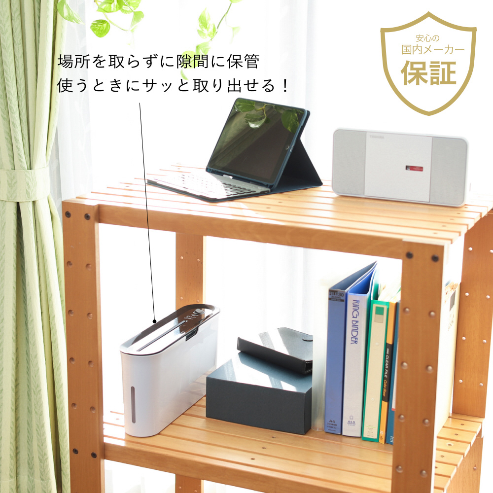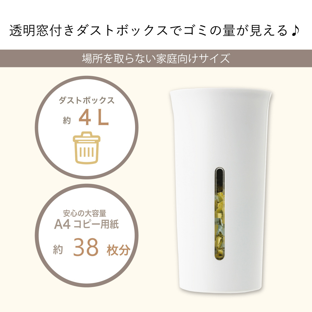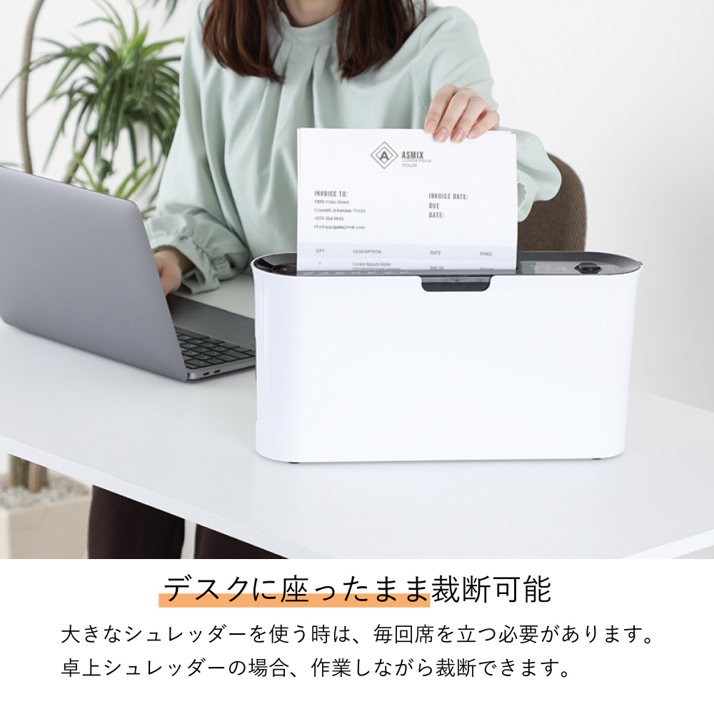 | 商品名 | セキュリティー性抜群!細断サイズ2×10mm マイクロカット ご自宅でパッと出してサッとしまえるコンパクトシュレッダー Asmix BKSB09W [マイクロカット /A4サイズ] |