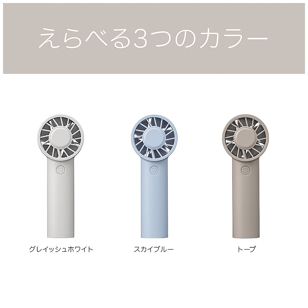 コンパクトなのにパワフルな風。持ち運びに便利なカラビナ付き&充電式モデル。4段階の風量調節が可能。