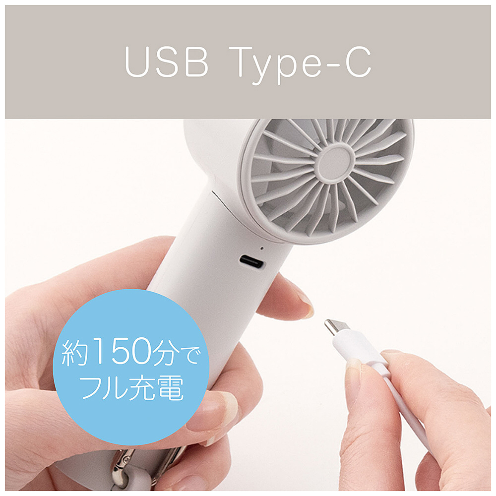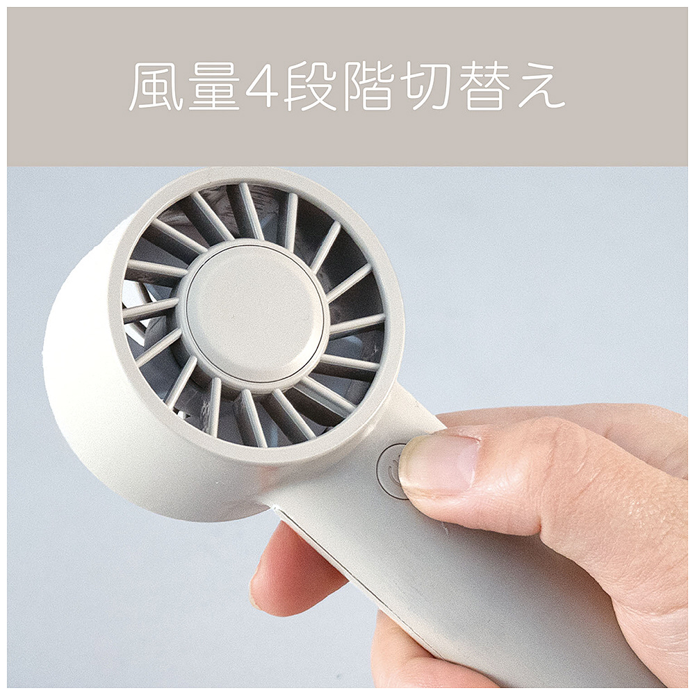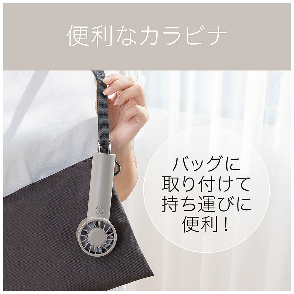 コンパクトなのにパワフルな風。持ち運びに便利なカラビナ付き&充電式モデル。4段階の風量調節が可能。