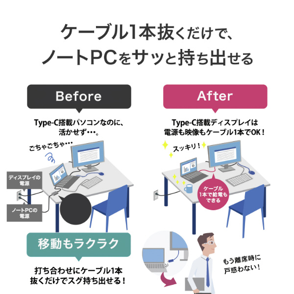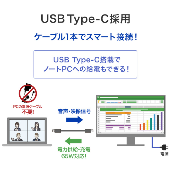 USB Type-C(R)搭載でノートPCへの給電も可能!