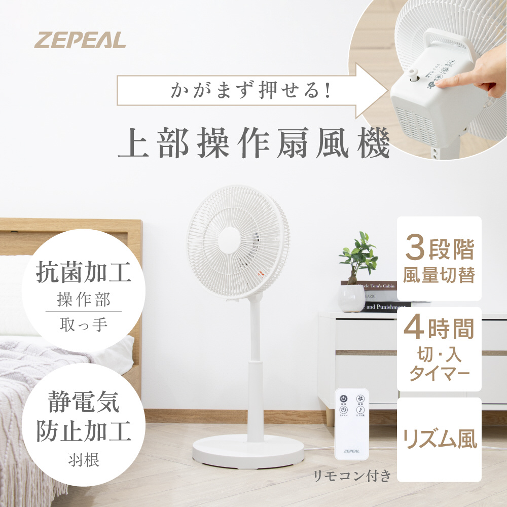 かがまずラクな姿勢で簡単操作〜上部操作 扇風機(リモコン付き)。