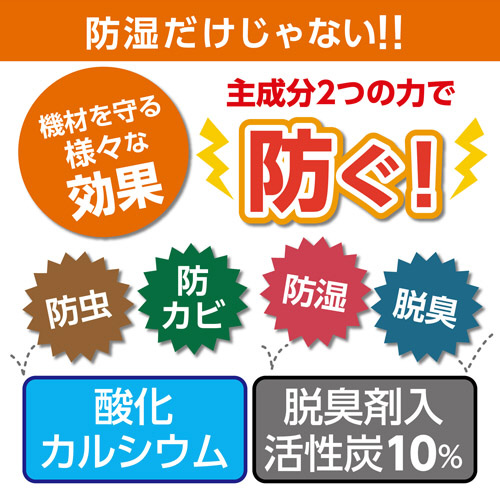 防湿、防カビ、防虫効果のある定番強度防カビ・防湿剤です。使用後は石灰肥料として再利用、土に戻せるエコ商品です