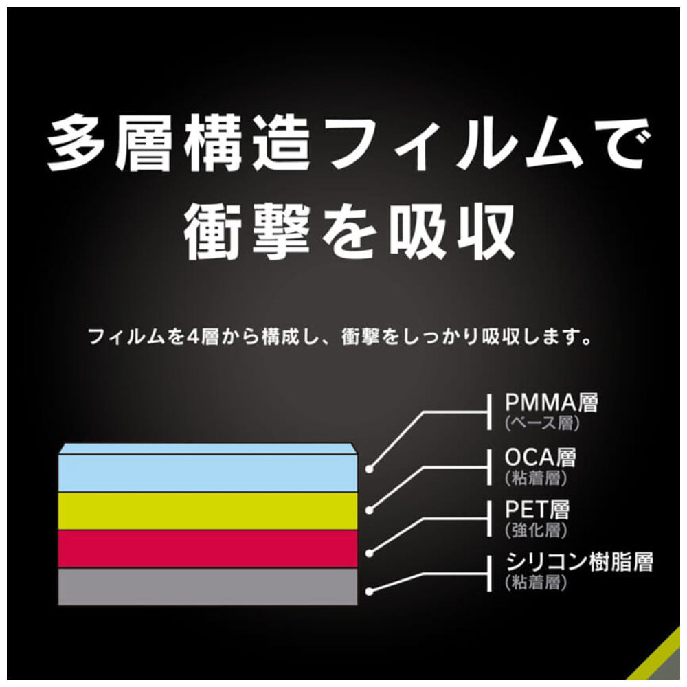 仕様1 | 画面くっきり、光沢タイプ 気泡ゼロの「バブルレス(R)」仕様 ガラスレベル超高硬度 アクリルフィルム 指すべりが良く汚れにくい「フッ素加工」 |