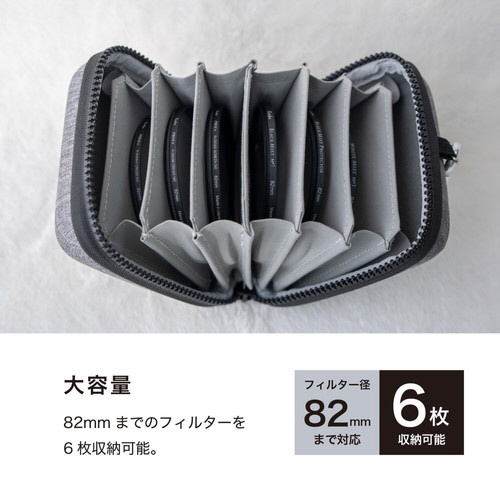 82mm径までのフィルターを6枚収納可能。大容量ながらコンパクトサイズを実現。