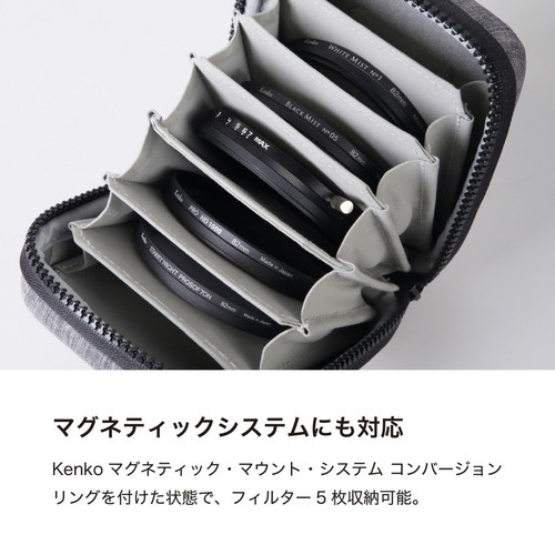Kenkoマグネティック・マウント・システム コンバージョンリングを付けた状態で、フィルター5枚収納可能。