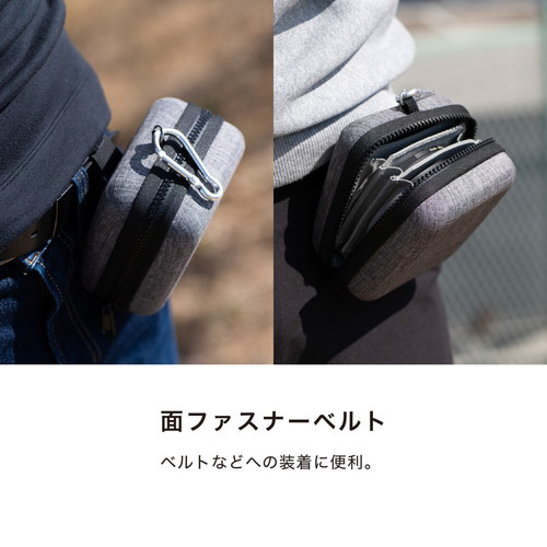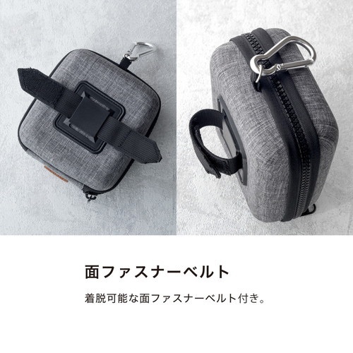 着脱可能な面ファスナーベルト付き。ベルトなどへの装着に便利です。