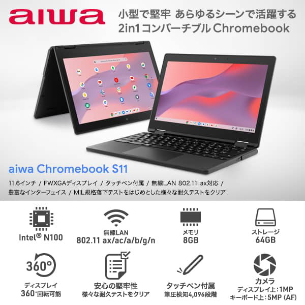 ノートパソコン aiwa Chromebook S11 JA4-LPC1101 [11.6型 /Chrome OS /intel N100 /メモリ:4GB /eMMC:64GB /日本語版キーボード /2025年3月モデル]