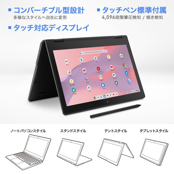 小型で堅牢 あらゆるシーンで活躍する2in1コンバーチブルChromebook