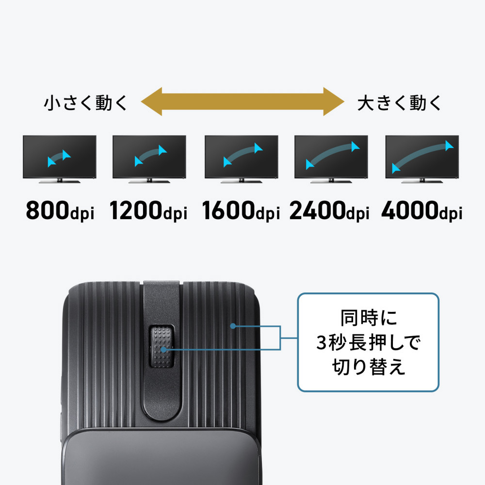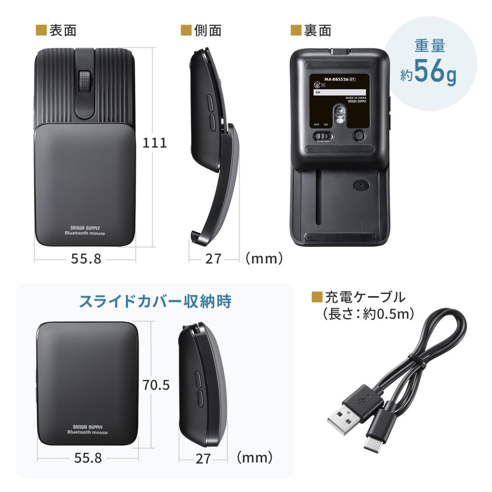 マウス スライド式(Chrome/Android/iPadOS/iOS/Mac/Windows11対応) グレー MA-BBS526GY [BlueLED /無線(ワイヤレス) /5ボタン /Bluetooth]