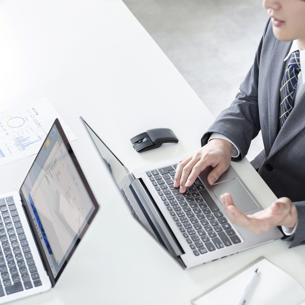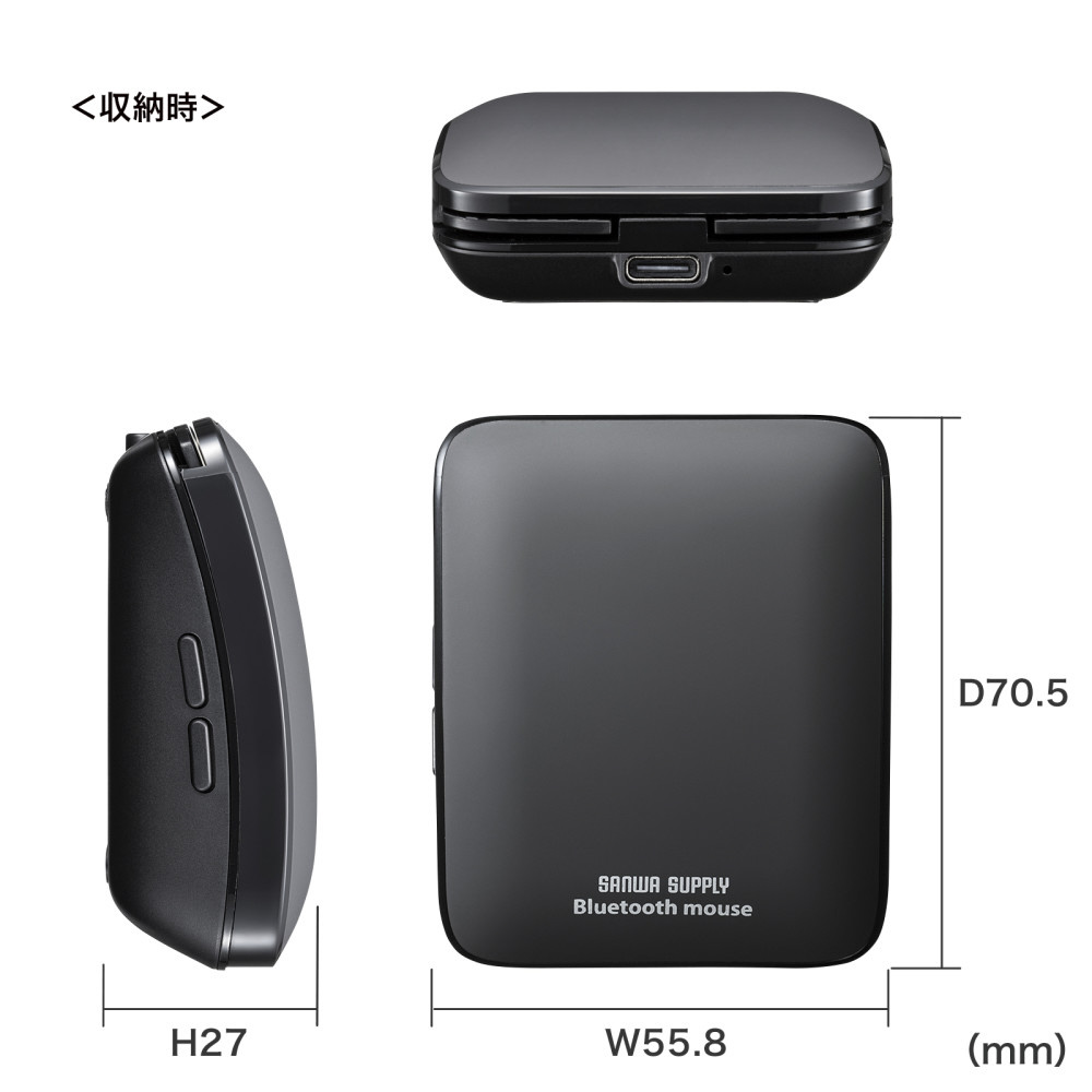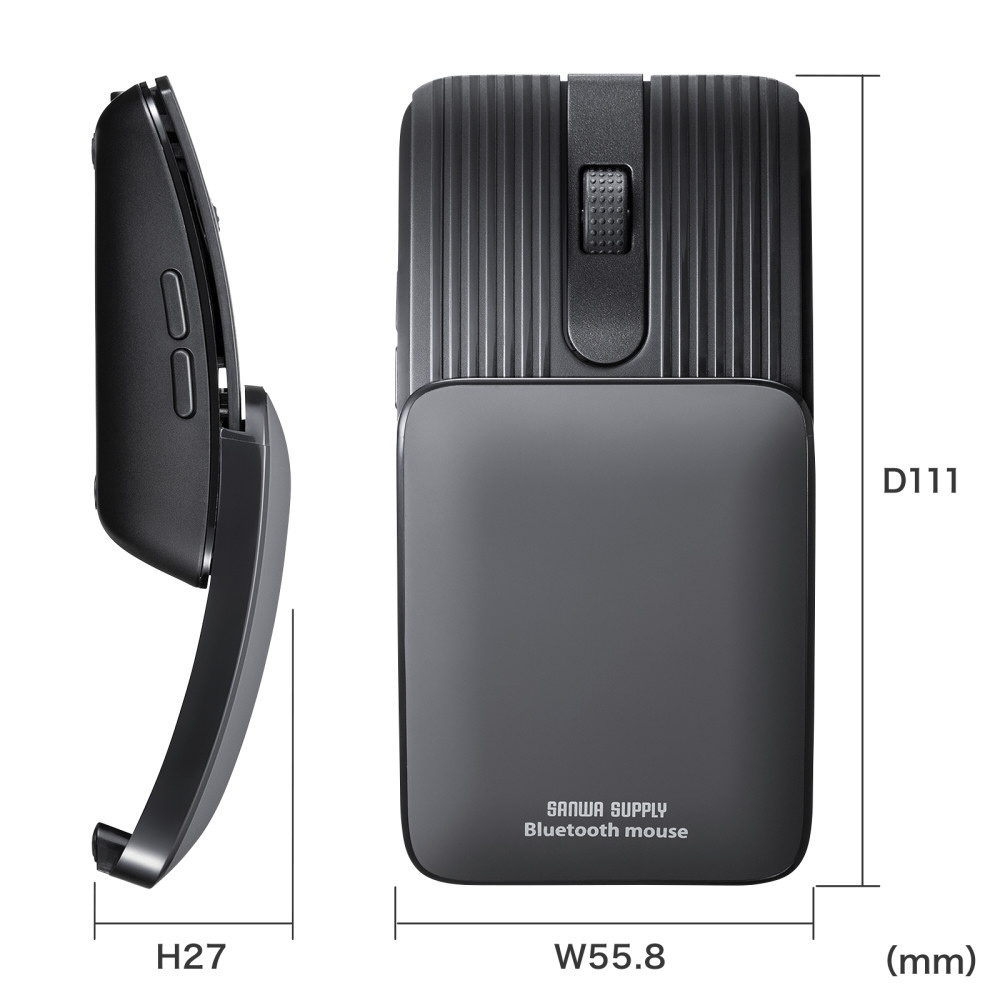 スライドしてコンパクトになるモバイルBluetoothマウス。