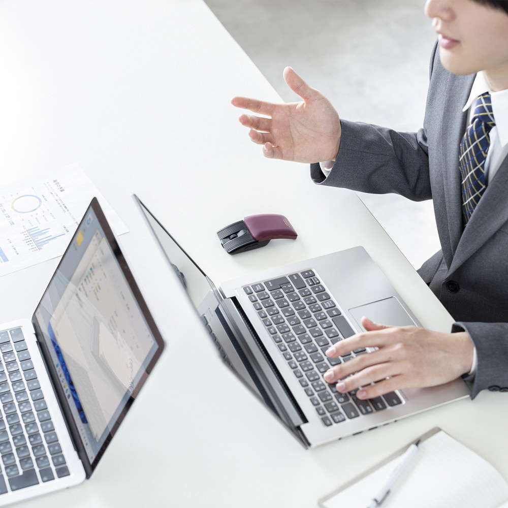 スライドしてコンパクトになるモバイルBluetoothマウス。