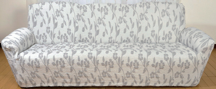 高級感あるリーフ柄でドレスアップ。生地全体が収縮してソファにフィット。