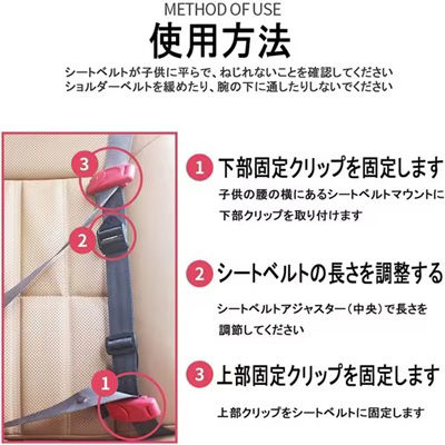 製品の重さはわずかに120g。一般的なチャイルドシートと異なり幅も取らないため、後部座席に3人のお子様を乗せて使用できます。