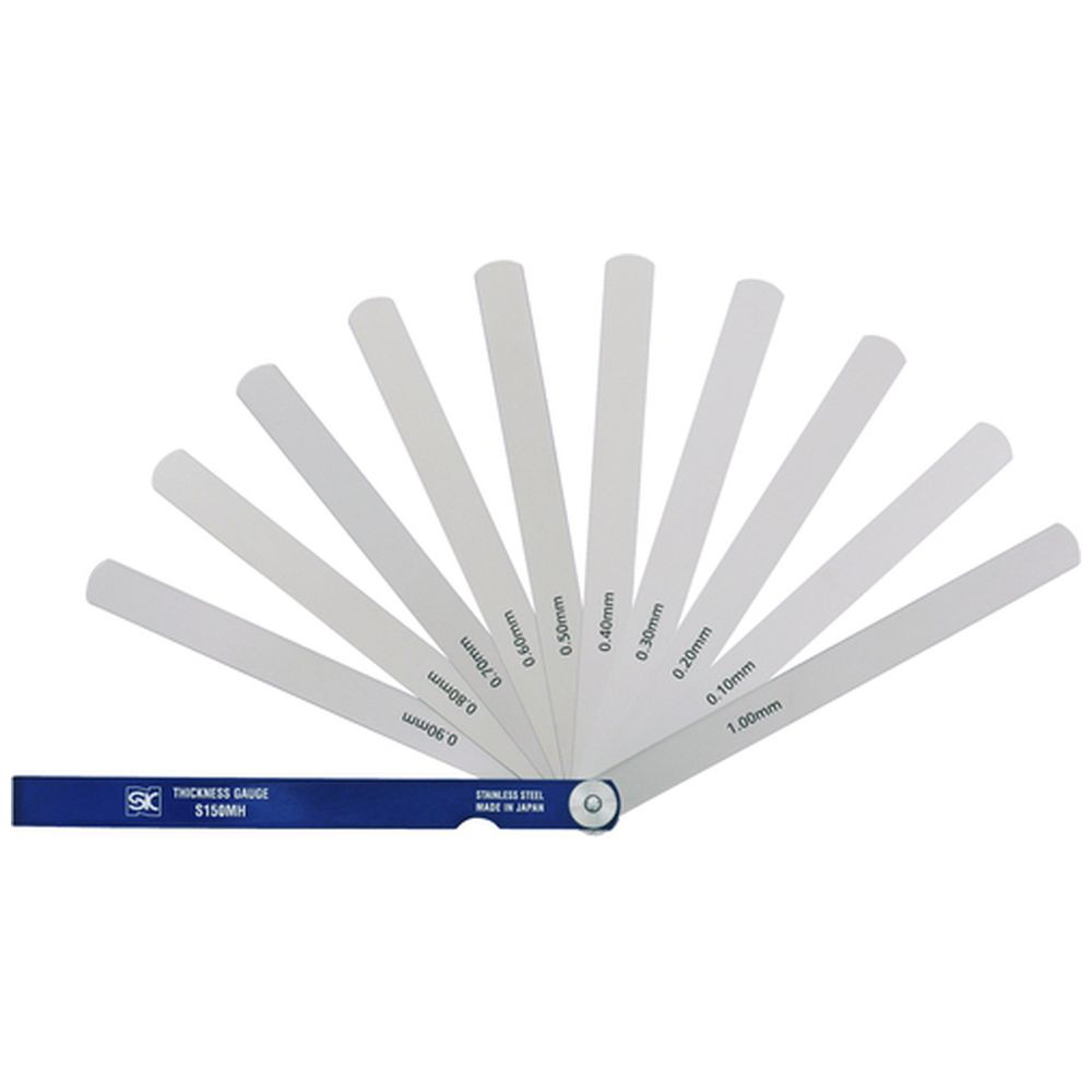 ステンレス製で錆びにくく、精密な測定が可能なシクネスゲージ。すきまゲージとしても使用できます。