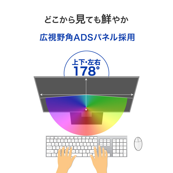 上下左右178°の広視野角なADS(Advanced super Dimension Switch)パネルを採用。見る位置や角度による色やコントラストの変化が少なく、どこから見ても映像を鮮明に映し出します。