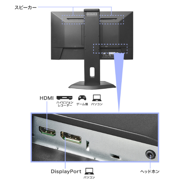 パソコンとの接続に便利なDisplayPortとAV機器などの接続に便利なHDMI端子を搭載しています。
