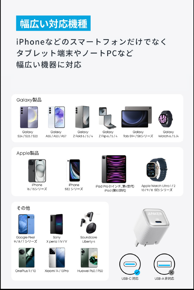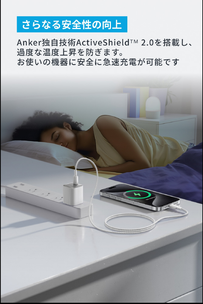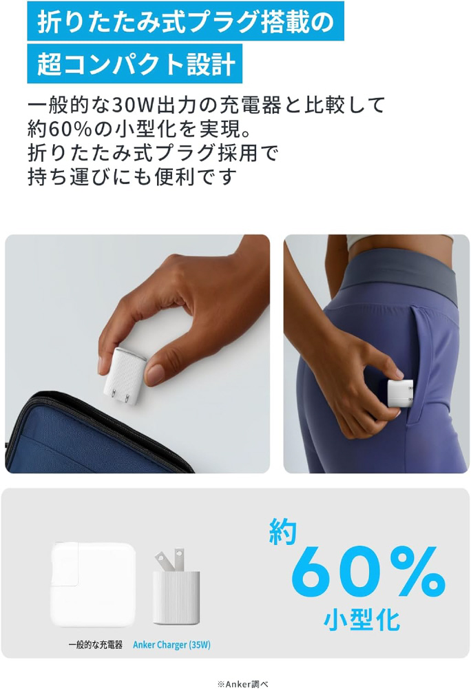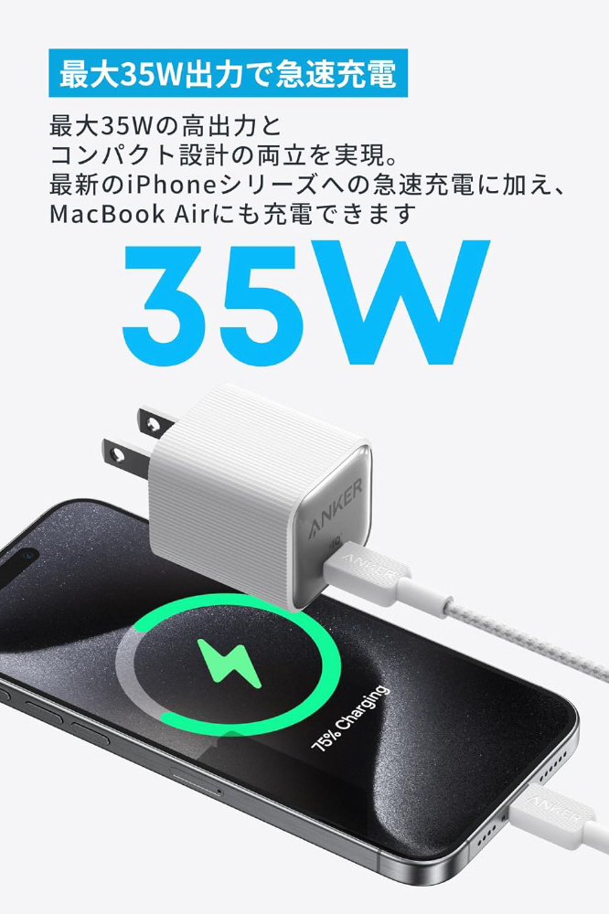 急速充電器 Anker Nano Charger (35W) with USB-C & USB-C ケーブル ホワイト B2339N21 [USB Power Delivery対応]