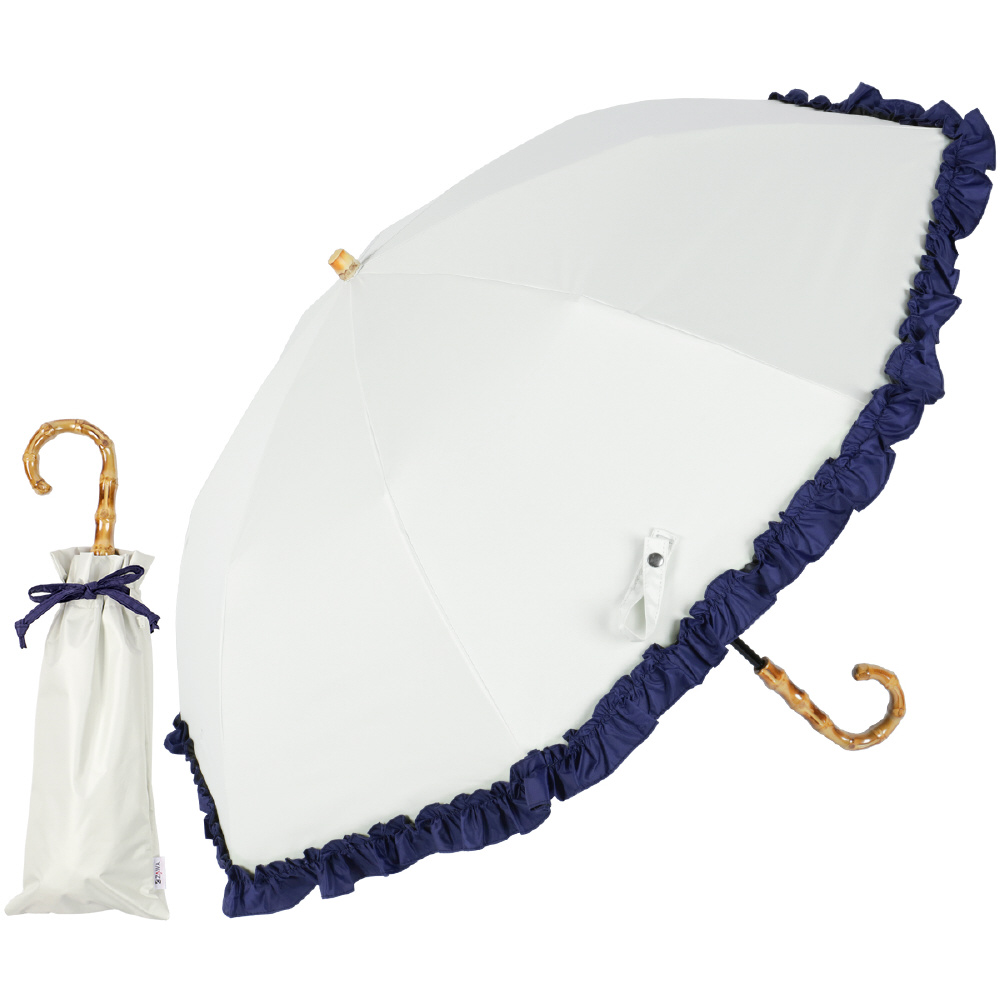 2段式折りたたみ日傘 nino シングルフリル オフ×ネイビー M50DQ-082PO-off-navy [晴雨兼用傘 /50cm]