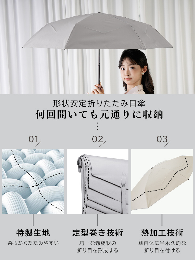 形状安定カーボン折りたたみ日傘 mono オフホワイト MEX55XT-063PI-off [日傘 /55cm]