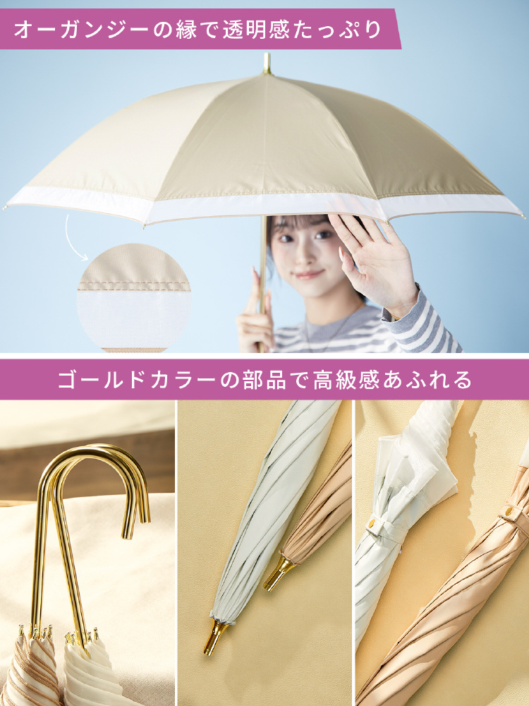 長傘 ショート丈オーガンジー日傘 bliss ベージュ M49OK-081PI-beige [晴雨兼用傘 /50cm]