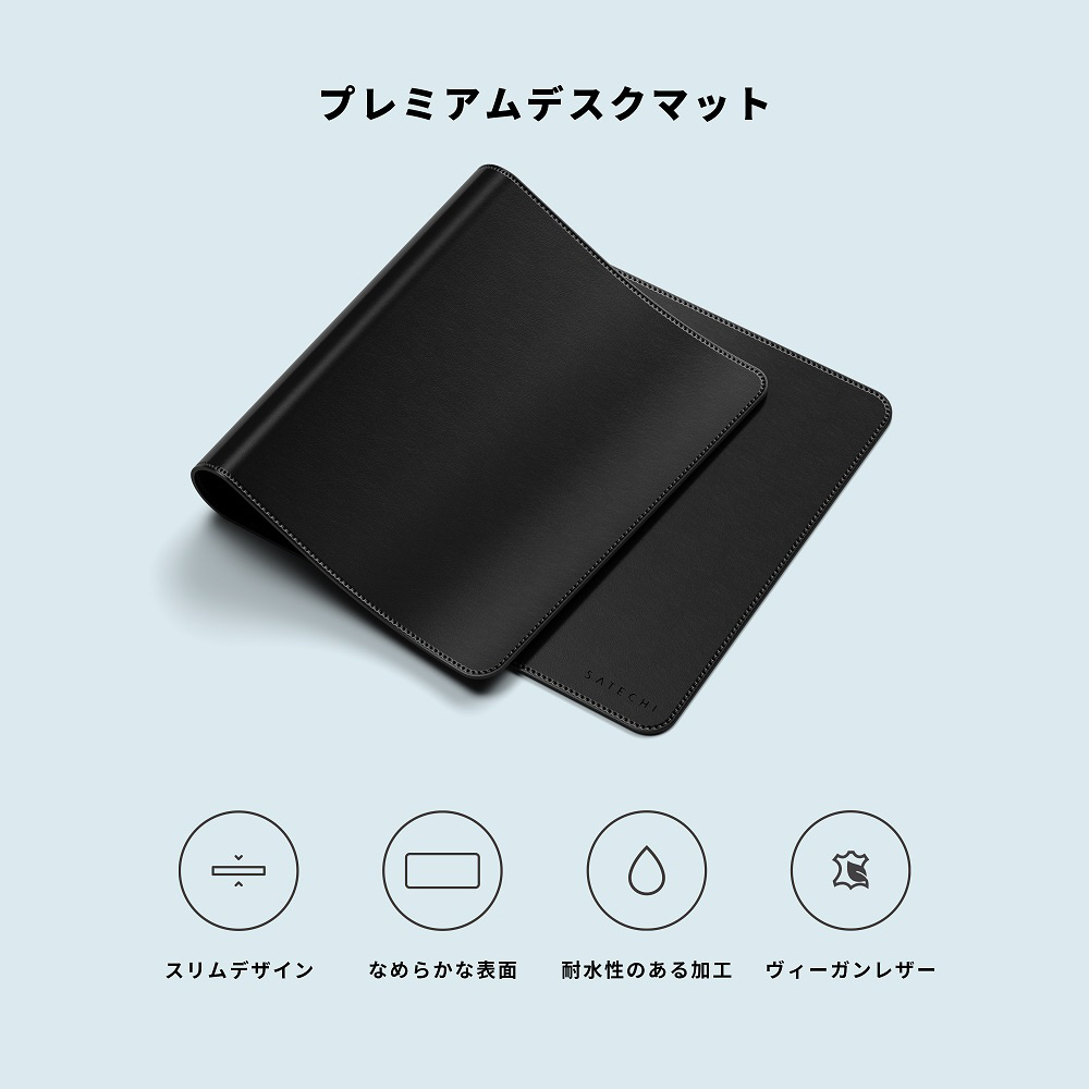 デスクスペースをスタイリッシュに保護しましょう。サスティナブルなヴィーガンレザーで作られており、マウスパッドメモパッドとして機能します。ブラック、ブラウン、ブルーからお選び頂けるカラーラインアップをご用意し、以前の製品より4インチ(約100mm)長く設計されており、レイアウト面のスペースがさらに増えています。