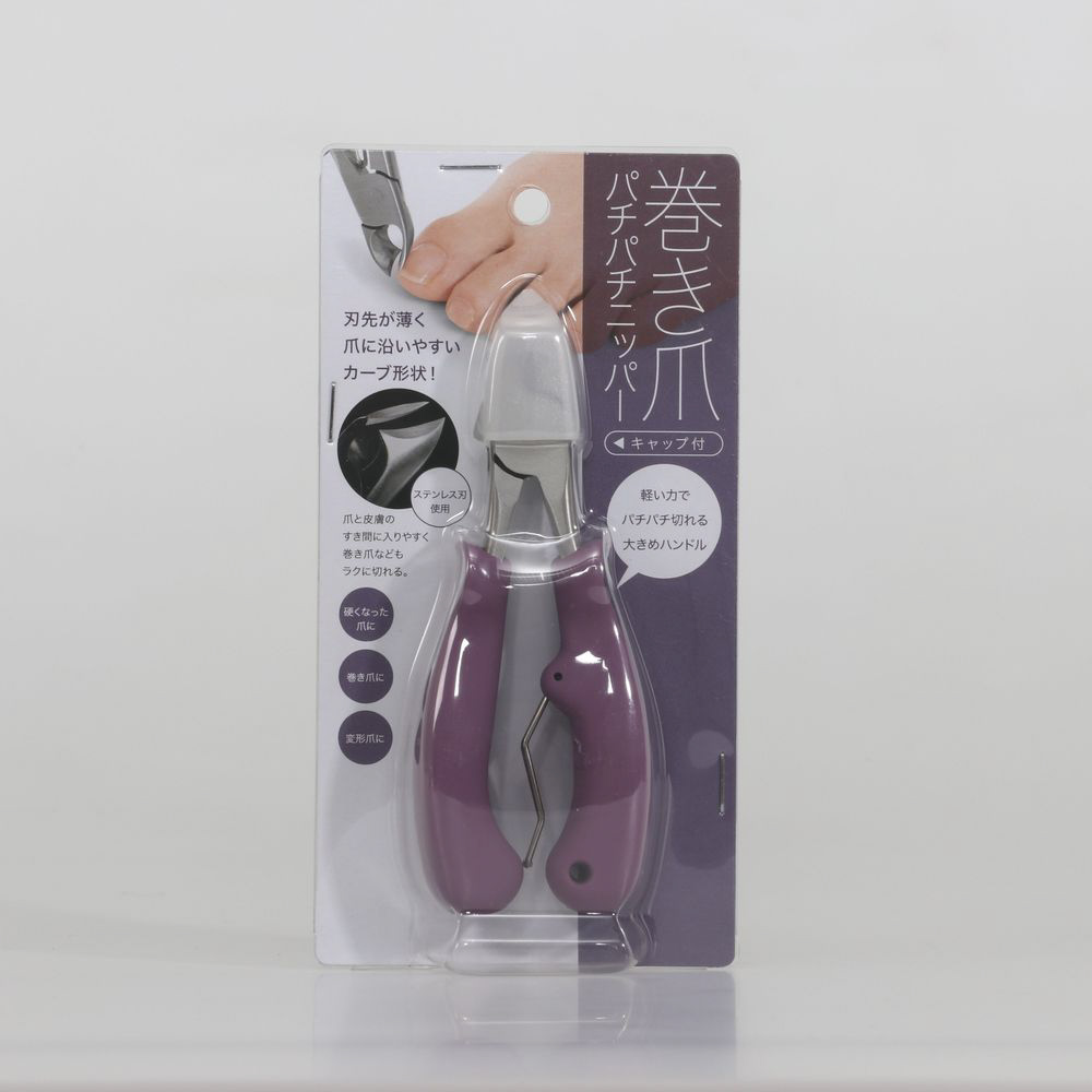 爪と皮膚のすき間に入りやすく巻き爪などもラクに切れるニッパー型爪切りです。