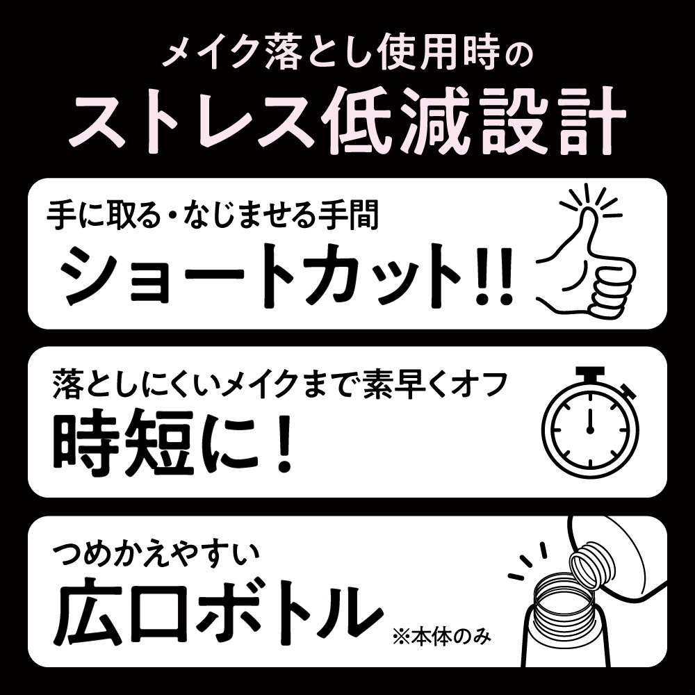 浴びるだけ、メイク瞬浮き!オイルがメイク膜を壊して浸透。毛穴に入った化粧下地・ウォータープルーフマスカラまでしっかりオフ。まさつレスな洗い心地。肌のうるおいを保つバリア機能のはたらきを守って洗えます。ほのかなホワイトフローラルの香り。まつ毛エクステをしていても使えます(シアノアクリレート系のグルーを使用したまつ毛エクステンションにお使いいただけます)。手に取る・なじませる手間時間をショートカット。