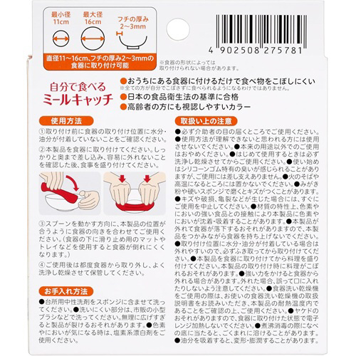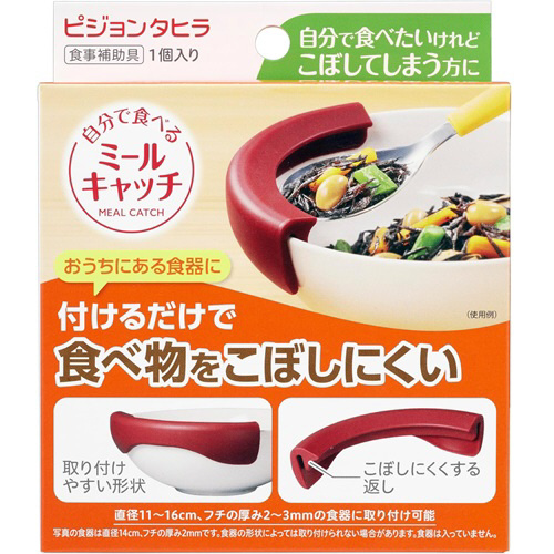 自分で食べたいけれどこぼしこぼしてしまう方に、食器に付けるだけの食事補助具です。