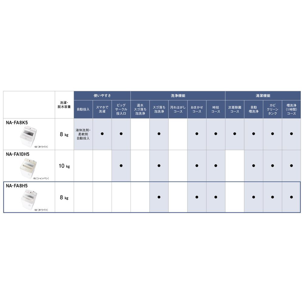 全自動洗濯機 FAシリーズ ホワイト NA-FA8H5-W [洗濯8.0kg /簡易乾燥(送風機能) /上開き]