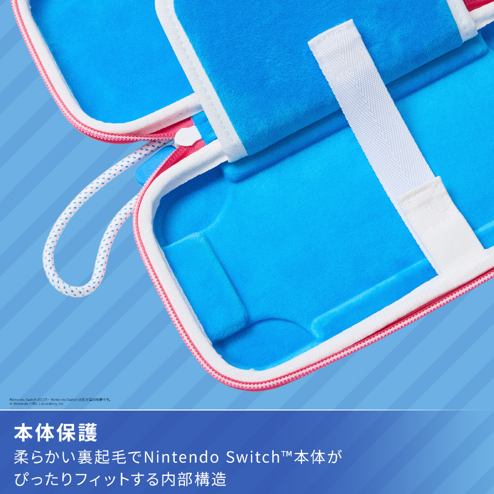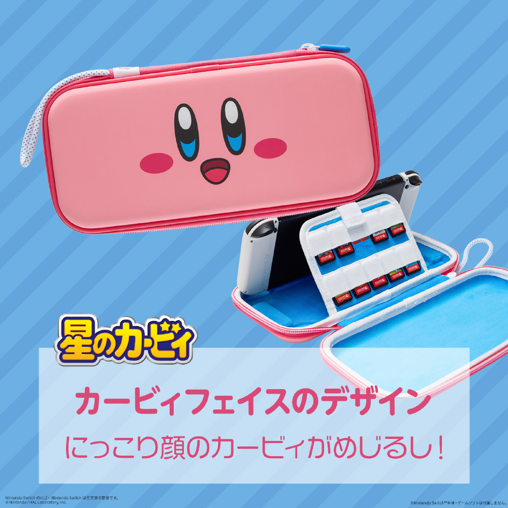 ケース全体がカービィのデザイン♪にっこり顔のカービィがめじるし!Nintendo Switch本体にぴったりフィットする頑丈でコンパクトなケース。コンパクトで軽量ながらケース外部はハードプラスチック製のシェルによりSwitch本体をしっかりと保護できます。ゲームカードを9枚収納できるポケットがあり、ゲームに必要なものをまとめて収納可能。いつでもどこでも好きな時にNintendo Switchを楽しめます。