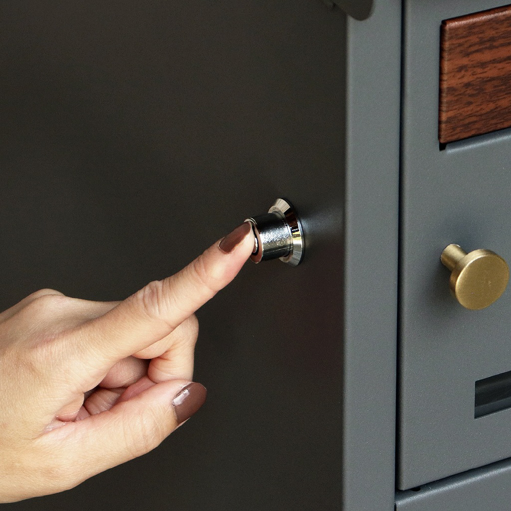 上段は、プッシュキーで簡単に鍵の開閉が可能で、防犯面にも安心です。また、スペアキーが1本付属しております。