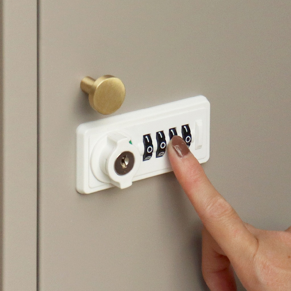ダイヤルロックとシリンダー錠(ダイヤル解錠番号が分からなくなった際の緊急用)でドアの開閉が可能です。
