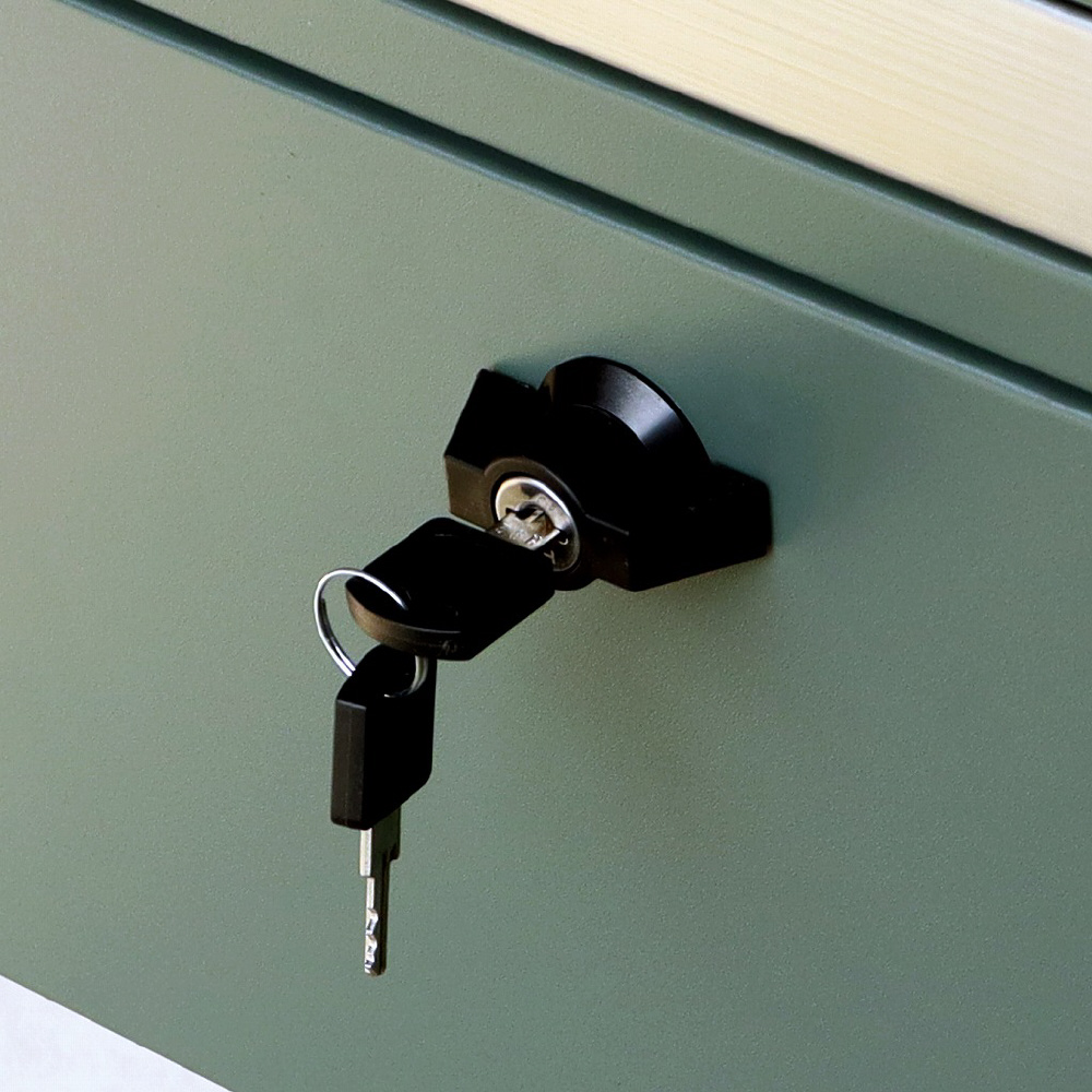 鍵部はひねりロックタイプを使用しており、ひねりレバーの操作で、鍵の開閉を行わずとも扉を閉めておくことが可能です。