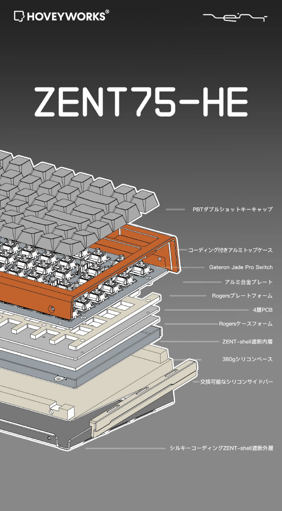 内部構造に複数層のフォームに380gのシリコンベースを搭載することで通常のラピットトリガー対応キーボードよりも良い打鍵感を引き出します。