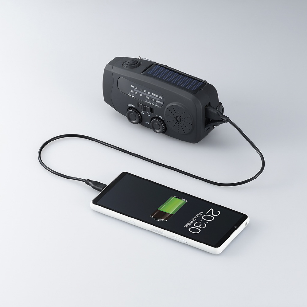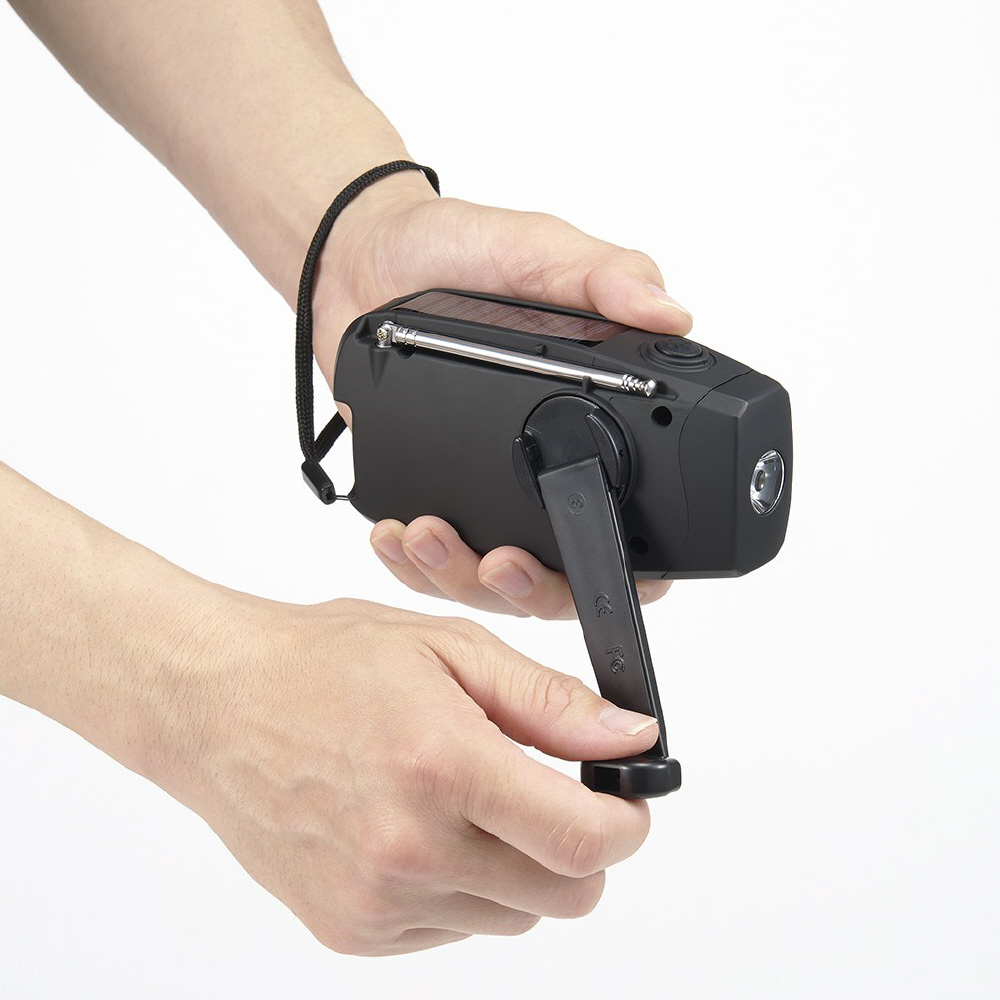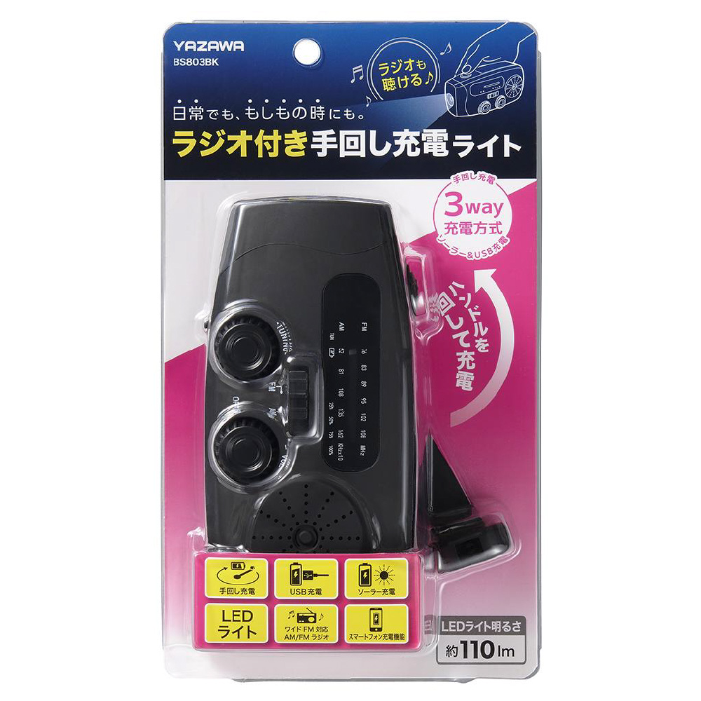 ラジオ付き手回し充電ライト BS803BK 電源3WAY仕様(手回し・USB・ソーラー)