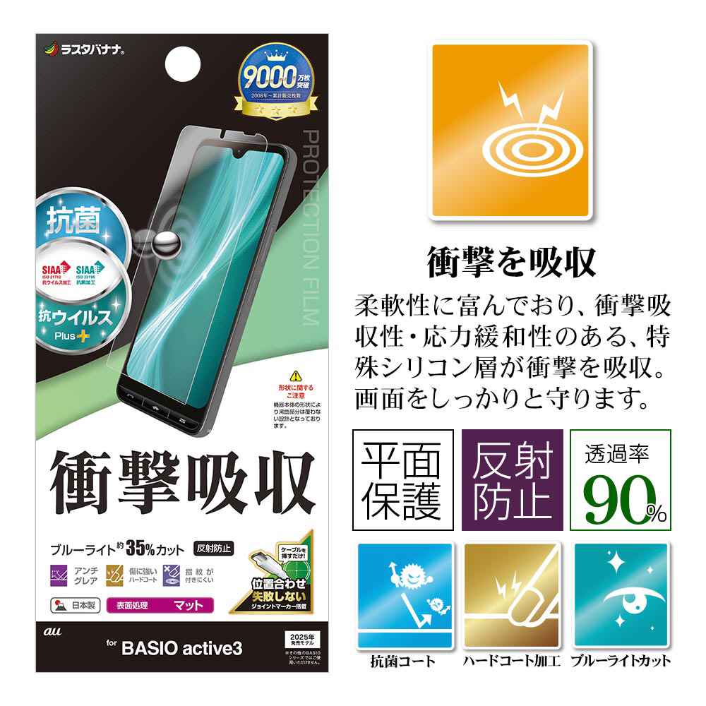 BASIO active3 衝撃吸収フルスペック 抗菌・抗ウィルス 反射防止フィルム VY4817BAA3